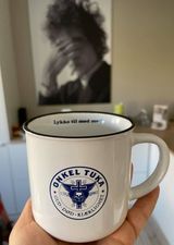 • Kaffekopp, Onkel Tuka-Lykke til med meg! HVIT/BLÅ